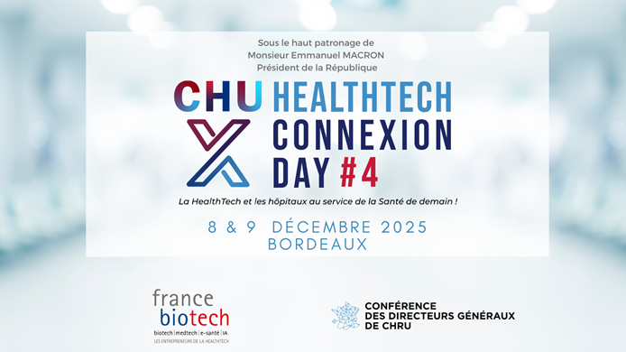Les 8 & 9 décembre 2025, à Bordeaux, France Biotech et la Conférence des Directeurs Généraux de CHU vous donnent rendez-v...
